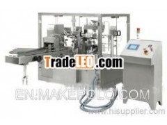 | RZ8-200 Bag Packing Machine Application Area:1. Solid Species: candy, peanut, green bean, pistachio,crystal candy, brown sugar, cookie, cake, daily commodities, cookedfood, pickles, puffed food etc.2. Granule Species: grain, refined monosodlum glutamate,granular drug, capsule, seed, chemistiy condiment, granulatedsugar, chicken essence, melon seeds, nuts, pesticide, fertilizer,feed etc.3. Powder species: milk powder, grape sugar, washing powder,chemistry condiment, refined sugar, pesticide, fertilizeretc.4. Liquid Species & Thick liquid Species: detergent,millet wine, soy sauce, vinegar, fruit juice, drink, tomato sauce,peanut butter, Jam, chili sauce, bean sauce etc.5. Materials that can pack in bag.Features & Characteristics:1. The packaging of machine is In extensive packing materialrange, only need to set up different supplies and choose differentmeasurement to be filled with the device.2. The packing bag suits in extensive range, suit formulti-layer compound prefabricatlon bag made by film andpaper.3. Change the specification of the wrapping bag rapidly, theautomatic given bag device is width can easy adjust by adjustmentof the handles.4. The spare parts on the machine which touch the product orpacking bag adopt stainless steel or other materials which accordwith the food hygienic requirements, guarantee hygiene and securityof the food.5.This machine can check there is no packing article orwrapping bag not to open, make sure the filling device and hotsealing device no work(option), this avoid wasting packingmaterials and raw materials.6. The packing materials loss low, what this machine is usedis to prefabricate wrapping bag, the wrapping bag pattern isperfect, it is of high quality to seal, this improved the productspecification.7. Frequency conversion adjusts the speed, this machine usesfrequency conversion to adjust and fit rapidly, can be adjustedwithin the range according to the needs of reality inproduction.8. Easy to operate, adopt advanced PLC to add POD (thetouch-sensitive screen) electric control system, the man-machineinterface is friendly.9. RD8-200 have two filling devices & two hot sealingdevices. Fill more kinds of materials.Main Standard Accessories:1. Date coder2. PLC controller3. Pouch open guide with open detector4. Consolidate device5. Cylinder6. Temperature controller7. Valve8. Vacuum pump9. Frequency converter10. Output conveyorMain Optional Accessories:1. Material (such as blocks, granules, liquid, powder) weigher& filler2. Platform3. Check weigher4. Material Elevator6. Production out put elevator7. metal detectorMain Technical Parameters:Model RZ8-200Working Position of machine Eight-working StationPouch type Portable bag, Hand luggage, Zipper Bag, Edging bag4 sides, Edging bag 3 sides, Paper bag, Pouch with cap etcSize of bag W:100-200mm L:100-300mmScaling scope 5-1500gSpeed 25-45bags/min (The speed depends on the product status,filling weight & which kinds of pouches)Total power 2.1KwDimension 1680×1420×1465mmAir compressor: 0.6m3/min(Supplied by buyer)Machine Weight: 1200kg |